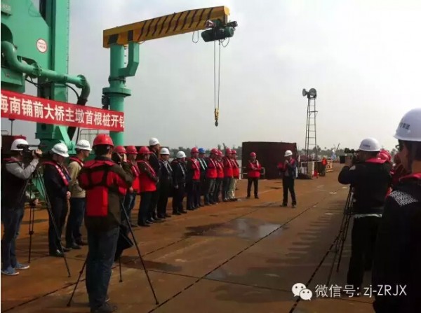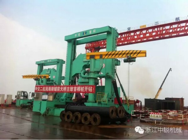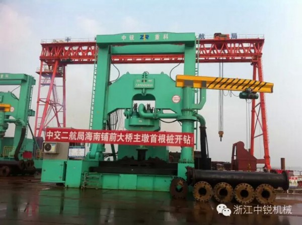 中锐重工科技股份有限公司生产的第二代ZJD5000/450反循环全液压钻机于26日上午10点在海南铺前大桥主墩的首根桩正式开钻。