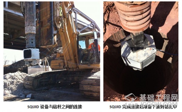 此外,为保证操作的安全与便捷,该设备是与钻机配合使用的,在清底篮完成工作后,卸下篮子,将SQUID设备直接安装在钻杆或者方形钻杆上。这样,检测在短短数分钟内即可完成,对工期干预做到最小化。操作人员远离钻孔,确保安全。利用钻机的压力,我们还可测试桩端土层的承载力。