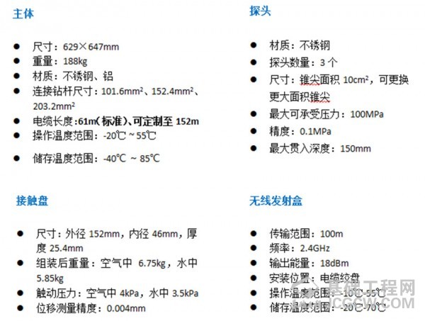 l 探头支撑力测试。3个探头采用标准静力触探探头(10cm2),可直接对设计参数进行验证。