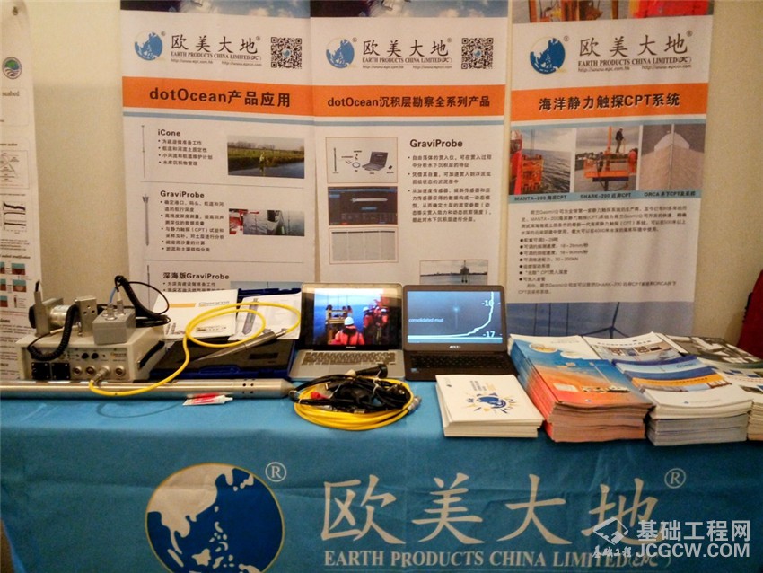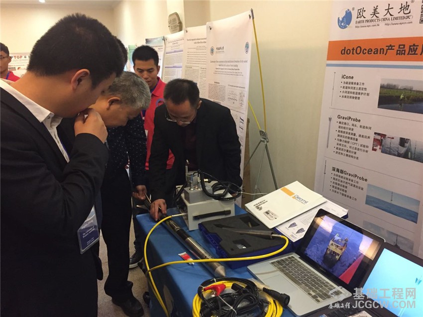 会上,欧美大地公司的荷兰Geomil海床静力触探系统和比利时dotOcean沉积层厚度测试仪及海洋物探产品在会议上的亮相引起了客户的极大兴趣,大家纷纷驻足咨询,并针对设备的实际应用问题积极提问。Geomil静力触探系统采用链式驱动,驱动力3~20吨连续可调,可覆盖各种地层测试需要。dotOcean设备可用于对港口、航道及水库等清淤工作量的预估计算,相比现有测量方式,效率可提高数十倍。