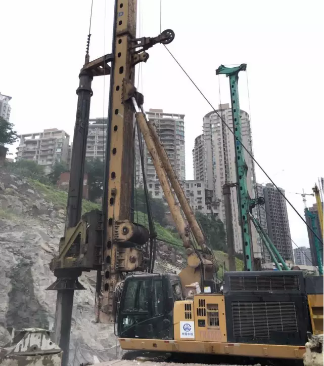 该项目位于重庆市江北区五里店北滨二路,桩型设计为防护桩,桩径2.6米,深度28~49米不等;其工程地质条件从上至下为全岩层:2~7米为砂岩层,7~18米为泥岩层,18~48米是砂岩层。由此可见,该项目桩基础施工难度之大,且对旋挖钻机的入岩能力要求之高。