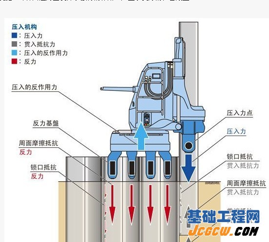 静压植桩机应用了与各类传统型打桩机完全不同的桩基贯入工艺机理。静压植桩机采用的是通过夹住数根已经压入地面的桩(完成桩),将其拔出阻力作为反力,利用静载荷将下一根桩压入地面的“压入机理”。日本技研制作所研发的静压植桩机在全球首次成功地将该原理付诸于实用。利用与地球成为一体化的反力,实现了小型化机器同样可以发挥强大能力的目的。经过多年的实践,利用该原理发展成熟的环保型压入工法(The Press-in Method),不仅对日本的都市化进程做出了贡献,而且被广泛应用于包括中国在内的世界30多个国家与地区的相关工程中。