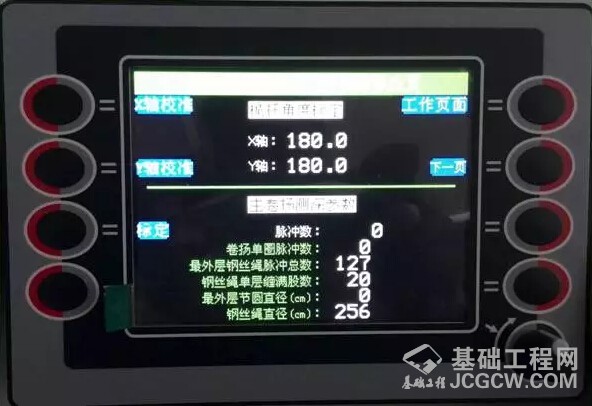 调整桅杆至实际竖直状态(用经纬仪进行矫正,保证桅杆绝对垂直,此过程很重要,要求操作者熟练掌握经纬仪的使用,垂直度误差与操作者的操作判断有关)后,按下左侧的“X 轴校准”和“Y 轴校准”,分别用于标定桅杆X 轴和Y轴的零位,标定后的数值在控制器中自动保存(注意:数据保存后一分钟内请勿断电),不用人为存储。