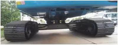 特殊的拖链轮结构,寿命提高2倍以上;控制引导轮、护轨器安装间隙,履带架与底座的配合间隙,规避了脱轨、底盘八字现象,提高了链节、支重轮的使用寿命。