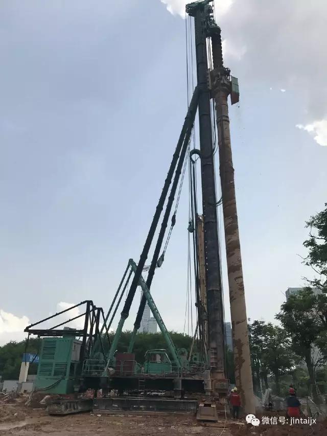 目部结合该工程基坑支护设计方案和地勘土层报告,经反复论证和几次试桩,最终决定选用在此工况下具备更好施工性能的新型桩基机械——SZ80-35多功能钻机。在施工方案的终审稿中是这样描述这台机械的: