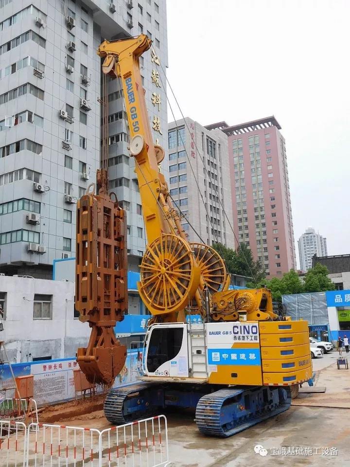 下图为宝峨GB 50 液压抓斗在南京市中级人民法院审判业务用房建设项目现场,背景为南京市地标建筑—— 南京紫峰大厦。