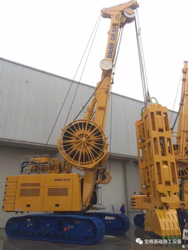 宝峨GB 50液压抓斗采用BT70基础工程专用底盘,为2016年正式推出的新款产品。其配置的V型液压抓斗斗体,采用全新的结构,更适合挖掘和冲击坚硬地层,可以适合600毫米-1500毫米的成槽厚度,最大成槽深度达80米,GB 50采用卡特C 9发动机,额定功率为261千瓦;配置的自由抛钩卷扬,使得斗体具有强大的冲击能力,挖掘能力大大增强,这种巧妙的设计,即避免了过分加重斗体所带来的钢丝绳损耗大、设备寿命减少、燃油消耗增加、场地移动危险等问题,又使得用户在仅增加很少投入的前提下,设备性能大大增强,可谓一举两得,令客户得到更多实惠。在刚刚结束的2017年宝峨天津厂内展中,宝峨公司推出了最新款的、包含2个自由落钩卷扬机的GB 50抓斗,这款设备的推出,将使得GB 50的挖掘能力得到进一步提高,也将为用户带来更大的收益。