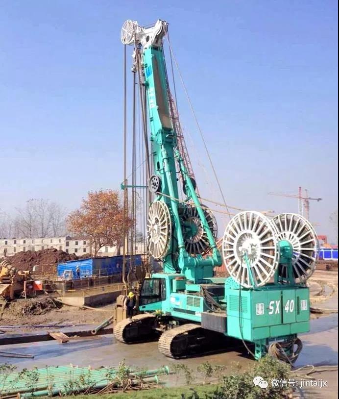 2014年9月——南昌地铁2号线过江隧道中间风井地连墙工程。槽宽 800mm、槽深35.5m,有近20米厚的中风化粉质泥岩,抗压强度在30MPa左右。金泰三大主流系列产品组合上阵、无缝接力——SH30H旋挖钻机引孔、SG60液压抓斗抓槽至15米深,由SX40铣削到底。SX40在历史名城南昌再次创造了经典案例。