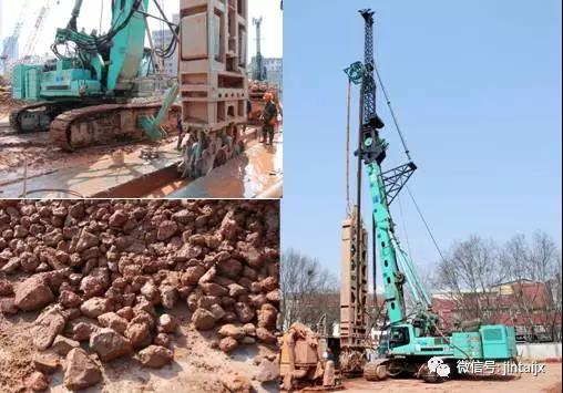 2016年12月——武汉轨道交通七号线八标段武昌工作井专项地连墙工程。上海金泰与隧道股份“强强联手”,SX40与SG60A“双机合璧”,入岩深度10米以上,并成功穿透46MPa中风化胶结砾岩。
