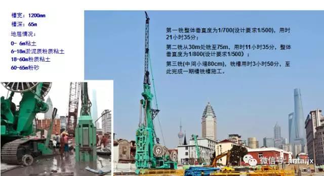 2017年4月——上海地铁十四号线豫园站试验槽。一期槽铣至75米,二期槽至65米,超深槽及“套铣接头”工艺应用更趋成熟。