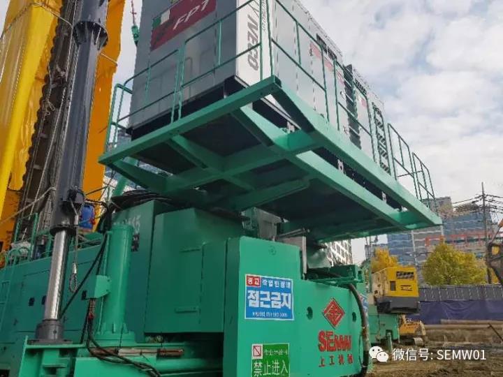 2017年接近年末,韩国市场传来喜讯,上工机械首台SPR115全液压履带式三支点打桩架于11月下旬在韩国釜山工地正式施工。