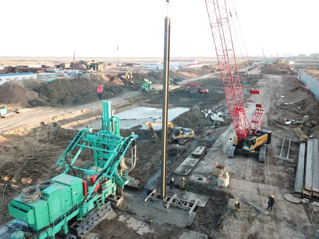 根据场区周边地质资料,地区原地貌为滨海浅滩,后经人工回填改造,地质情况复杂,上工机械TRD-70E工法机凭借优异的施工表现和强悍的产品性能有效保证了项目的施工进度,设备以低故障,稳定精准,快速适应施工环境,施工过程中可将不同地层搅拌均匀,形成上下一致的高品质墙体,同时设备主要工作机构均有测量传感器,可对墙体的直线性、垂直性进行有效监控,确保成墙质量。另外,现场上工机械优质的售后服务保障团队24小时驻场保障,为项目施工提供合理化建议,对施工工人进行专业培训和现场交底,时刻为TRD设备施工保驾护航。