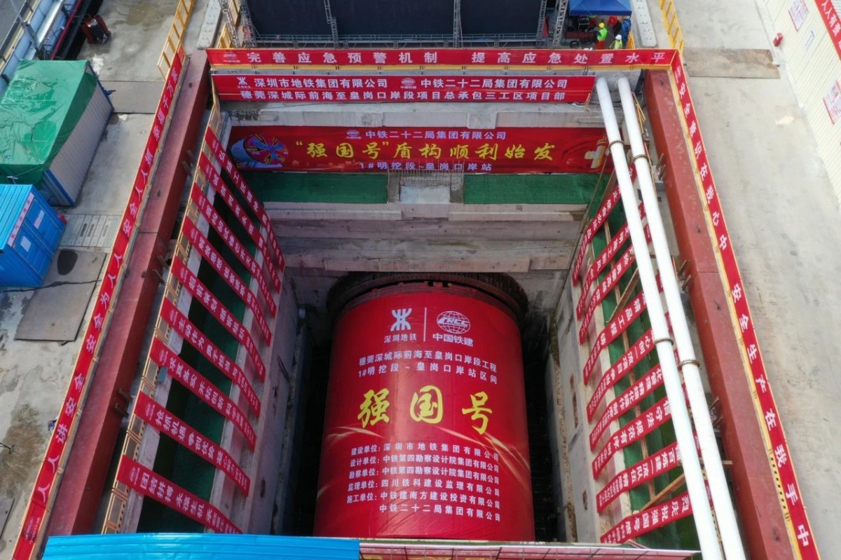 近日,由铁建重工和中铁二十二局联合打造的超大直径泥水平衡盾构机“强国号”顺利始发,标志着深圳地铁集团建设的最大直径盾构隧道——穗莞深城际前皇项目工程正式进入盾构掘进施工阶段。