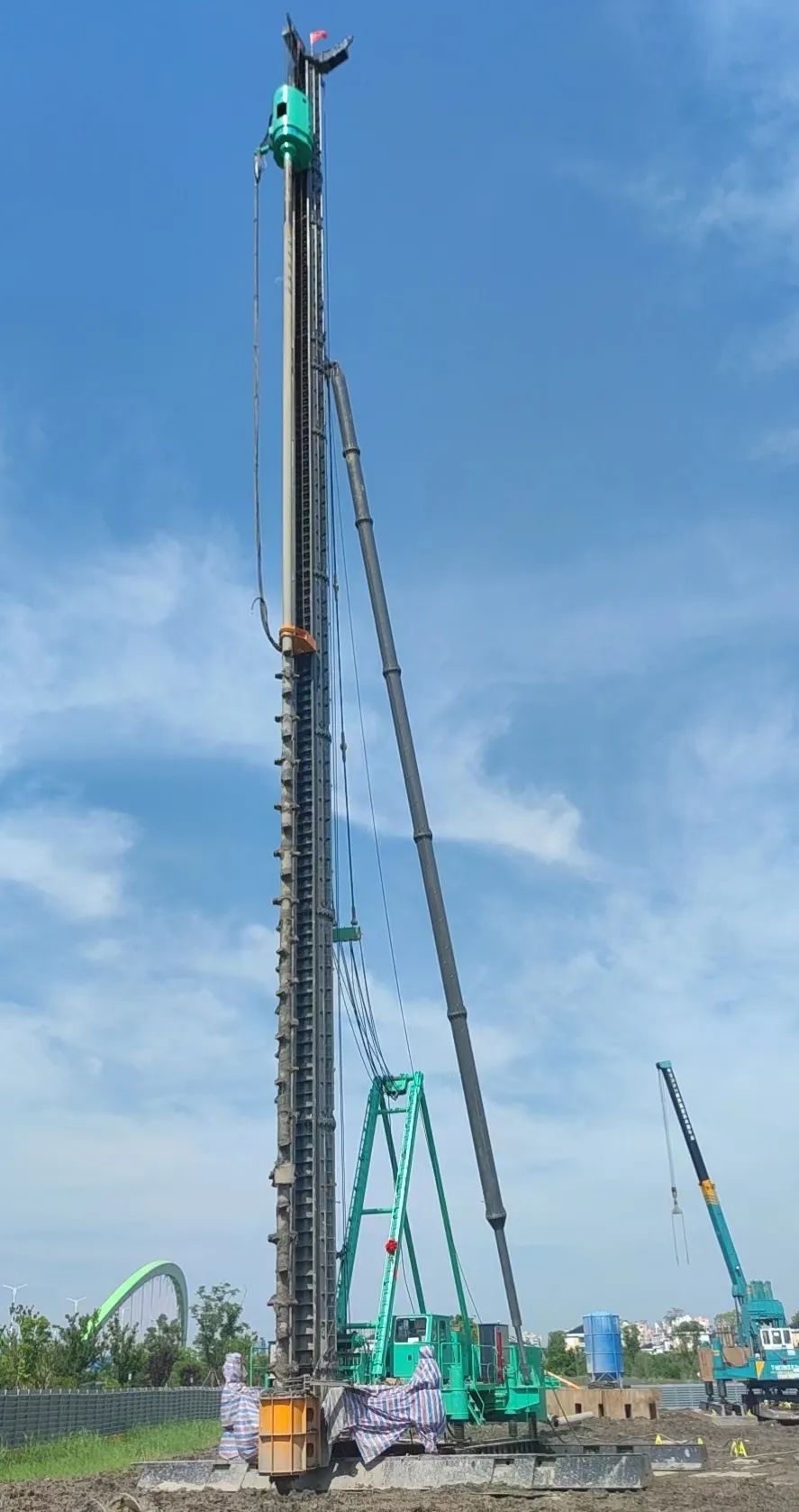 多功能植桩钻机是一种绿色环保的新型桩基,具有低噪声、无挤土、少排泥、搅拌均匀等优势,应用于高层建筑、桥架等工程。与普通管桩相比不会发生爆桩、欠送、偏桩等问题;与钻孔桩相比不会发生塌孔、缩颈等问题,可有效保证沉桩质量。其适用于填土、淤泥、淤泥质土、粘性土、黏土、砂土、碎砾石土、强风化岩以及中风化软质岩等底层。