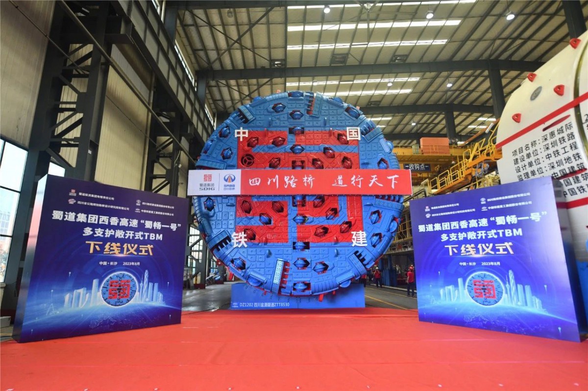 8月3日,由铁建重工和四川路桥共同打造的西香高速敞开式TBM“蜀畅一号”在湖南长沙下线。“蜀畅一号”整机长约170米,开挖直径达8.53米,是西南地区首台同步平导多支护敞开式TBM。