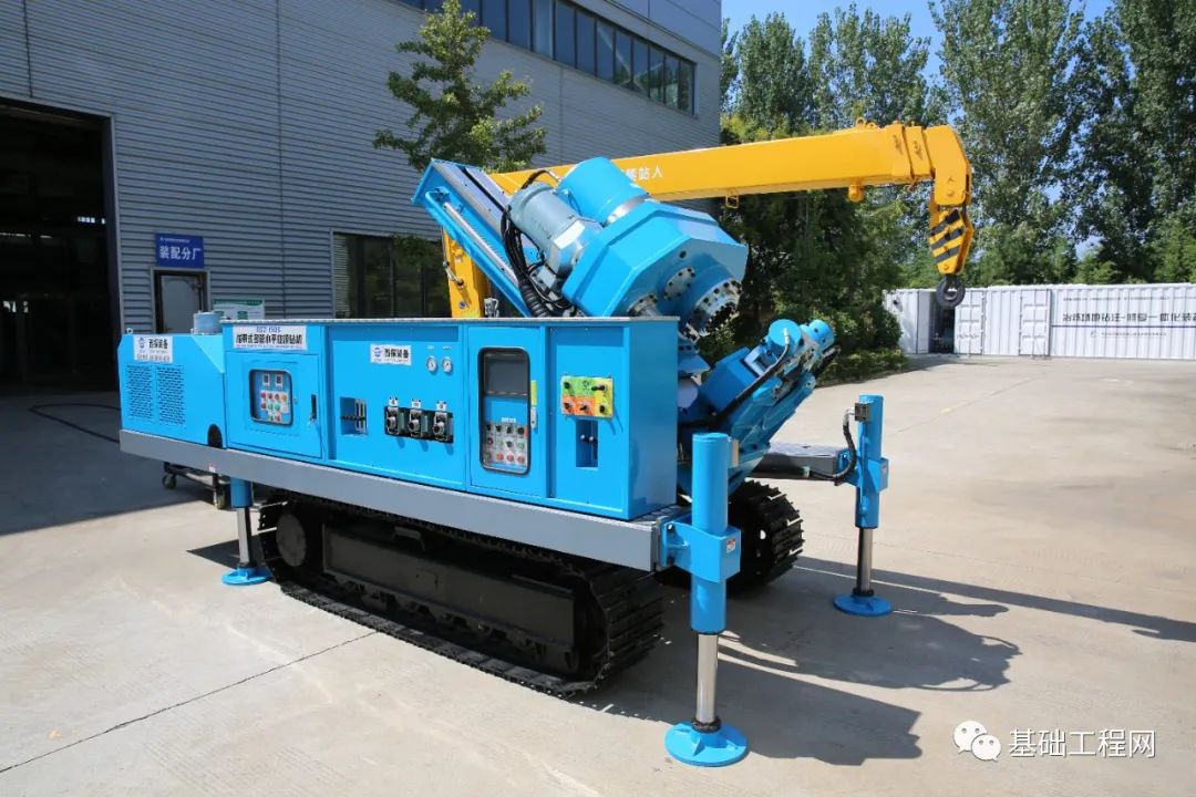 该钻机可灵活进行钻杆直径在89~142mm范围内的多管垂直/水平工法施工,并可用于一般旋喷工程施工(包括摆喷和定喷)。同时,配备3吨吊臂,有效降低施工人员的劳动强度。