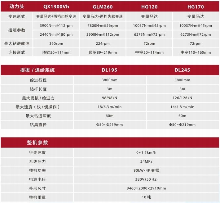 2、动力头回转、主卷扬升降、履带行走、工具卷扬升降全部为无级调速,并配有过载安全阀、平衡阀,制动器等多重安全机构,工作平稳,安全可靠。