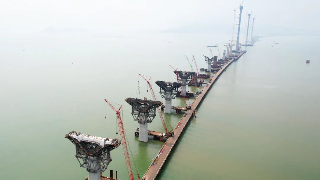 黄茅海跨海通道是粤港澳大湾区又一超级工程——总投资造价约130亿。项目全长31公里,起于珠海市高栏港平沙镇,与珠海高栏港高速公路、鹤港高速二期相接,进入跨海段后,经建设中的高栏港大桥、中引桥、黄茅海大桥进入江门台山市,抵达对岸后接入狮山隧道和象山隧道。项目承建单位为中交路桥建设有限公司。