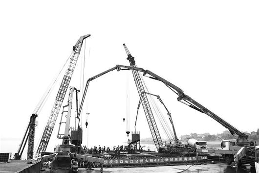 据了解,沌口长江大桥的3号和4号桥墩位于长江航道中,是大桥的两个主墩。基座施工,是在江底浇筑坚实的混凝土平台,也是大桥建设中的第一个重要施工节点。