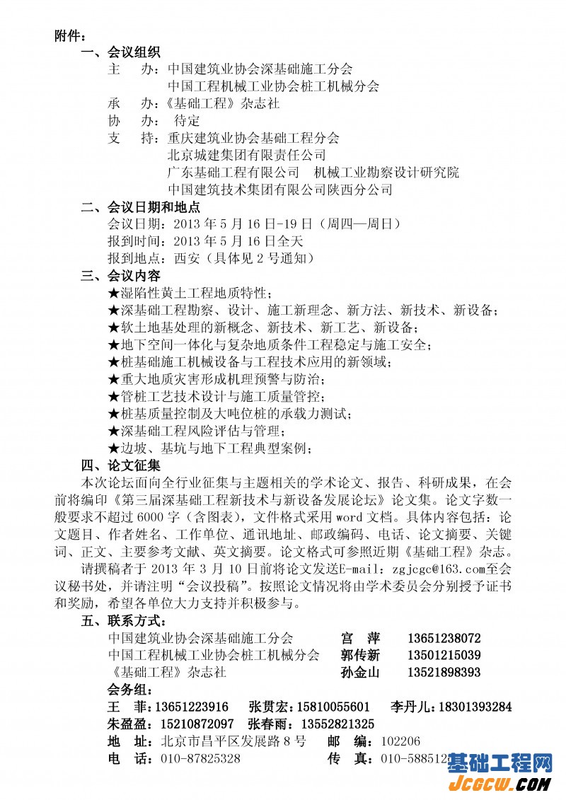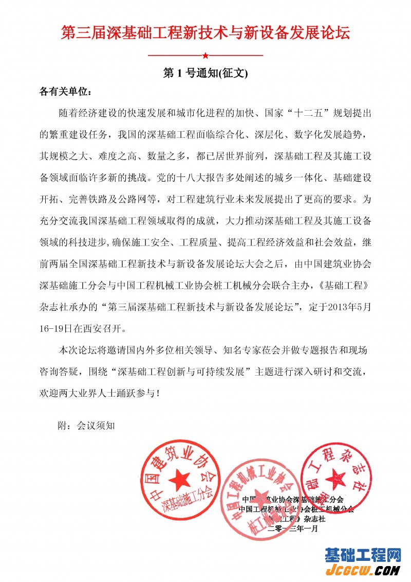 核心提示:第三届深基础工程新技术与新设备发展论坛★第1号通知(征文)各有关单位: 随着经济建设的快速发展和城市化进程的加快、国家十二五