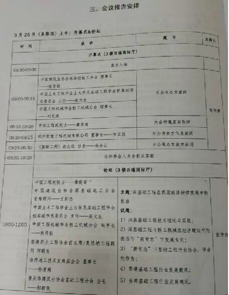 2015年3月25日,由中国建筑业协会深基础施工分会与中国土木工程学会土力学及基础工程学会桩基础学术委员会及中国工程机械学会桩工机械分会联合主办的“第五届深基础工程发展论坛”将在浙江省杭州市召开,今天为报到日,26日-27日正式召开会议。