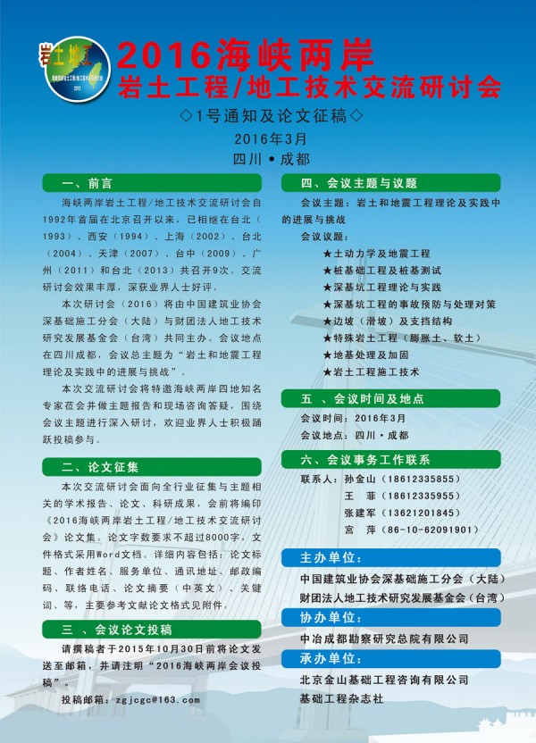 2016海峡两岸 岩土工程/地工技术交流研讨会一号通知