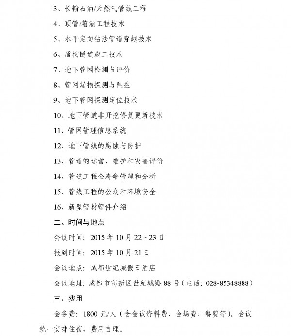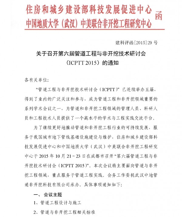 ICPTT 2015第六届管道工程与非开挖技术国际研讨会议通知