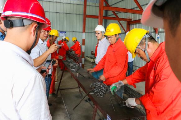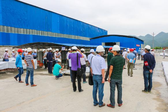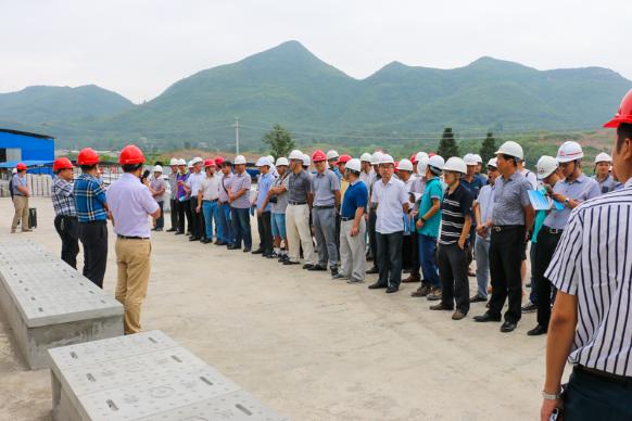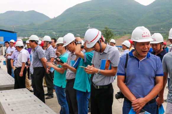 小型预制构件场现场负责人首先向大家简要介绍了该场的概况、功能分区、设备配备、生产任务、施工工艺、标准化建设、工艺性试验、质量控制措施、目前的生产情况等。随后,他又带领大家对生产的各个环节、施工设备、工艺控制流程等进行了讲解或演示。与会人员兴趣昂扬,拍照的、录像的、刨根问底的、赞不绝口的......