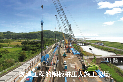 日本株式会社技研制作所研发的无振动、无噪声的液压式压拔桩机---静压植桩机,在与日本地震?海啸防护对策工程领域中发挥了其独特的功效和作用。以下以日本NINO海岸堤防改建工程为例介绍静压植桩机在堤防改建工程的应用。