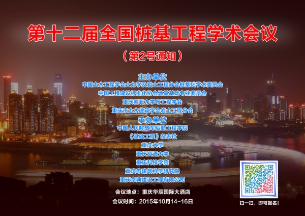 核心提示:(第2号通知)会议地点:重庆华辰国际大酒店会议时间:2015年10月14-16日主办单位:中国土木工程学会土力学及岩土工程分会桩基础