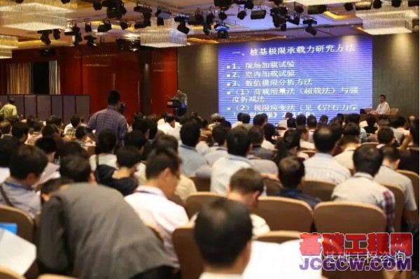 其中,后勤工程学院郑颖人院士、中国建筑科学研究院地基所高文生研究员、华东建筑设计研究院有限公司教授级高工王卫东、天津大学郑刚教授、中国土木工程学会教授级高工张雁、同济大学杨敏教授、中国工程机械学会桩工机械分会郭传新研究员等分别作了题为《桩基的数值极限方法与试验》、《建筑桩基抗震性能振动台试验研究》、《嵌岩桩承载变形特性研究与工程实践》、《往复加载条件下不同桩型的单桩水平承载性状试验研究》、《预制桩技术及应用》、《海上风机桩基础及结构的设计与探讨》、《国内桩工机械发展概况与趋势》…的报告。与会代表一致认为,大会学术报告及研讨交流代表了当前我国桩基工程领域的研究实力、最新成果和技术水平,促进了我国桩基工程技术的交流与发展。