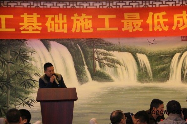会议开幕式由重庆市建筑业协会基础工程分会副会长杨剑主持并致开幕词。首先副会长杨剑对与会人员的到来表示热烈的欢迎,对大会的召开表示祝贺,并祝愿分会在今后能够更好的发展,不断进步。副会长杨剑指出如今重庆的旋挖市场是一年不如一年,只有靠群体的力量才能度过难关。会议针对重庆的市场现状,施工成本分析,为保持市场正常运营秩序提出倡议,进行讨论。