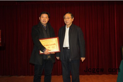 宋朝义会长向上海京路信息技术公司总经理孙继东颁发荣誉证书和牌匾