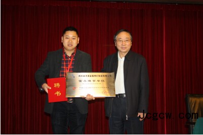宋朝义会长向四川金洪源金属网栏制造公司总经理宋道国颁发常务理事聘书和牌匾