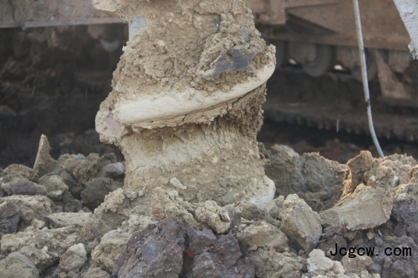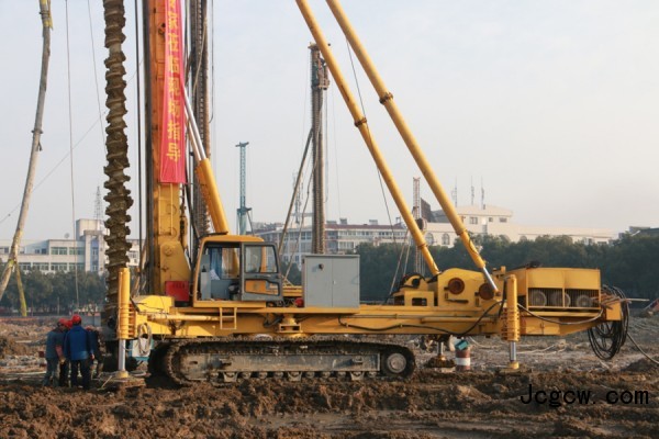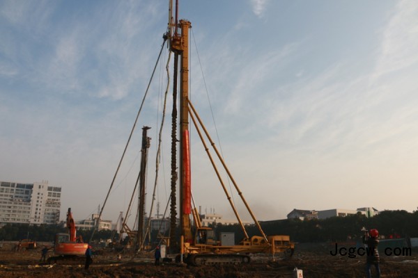 8:10,桩机的钻进忽然慢了下来,站在孔口附近,能听到钻杆传导的钻头受阻的轻微声响。“这个工地属滨海冲洪积平原,工地基础位于地下水水位以下,岩土种类多,有10米粘土层、13至15米卵石层,密度为80%,施工难度较大。现在应该是在穿过胶结密实的卵砾层。这个机子动力头扭矩大,能加压施工,一会就能钻过去,没问题的。”浙江欣捷建设集团基础工程分公司苗鸿文总经理胸有成竹。苗总率领的施工队伍,最初调用了7台桩机,平均每天只能完成3至4根桩,效率不太理想,影响施工进度。经多方了解,山东探矿厂生产的全液压多功能桩机,可以采用螺杆桩施工工艺。经实地研究地质报告,山东探矿厂提出的桩机解决方案得到浙江欣捷的肯定,决定引入LGZ-40桩机,结果一炮打响:设备进场施工10多天,同样工时、同样施工桩深25米、桩径600毫米,成桩效率提高近一倍。如果与旋挖钻机相比则能提高效率2-3倍,比冲击钻机提高15至20倍。成孔质量好,水泥充盈系数小,节约成本。