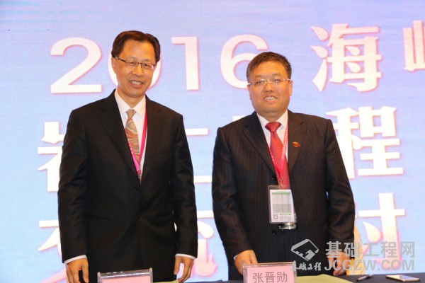 中国建筑业协会深基础与地下空间工程分会理事长张晋勋先生与财团法人地工技术研究发展基金会董事长俞清瀚先生共同签属会议纪要