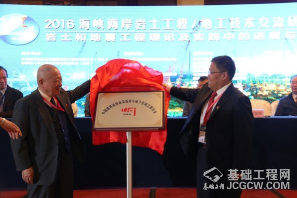 为适应新形势以及行业发展的新需求,拓展分会的服务范围,扩大分会的影响力和知名度,进一步起到行业发展的引领作用,经报请中国建筑业协会批准同意,2015年12月“中国建筑业协会深基础施工分会”更名为“中国建筑业协会深基础与地下空间工程分会”。借此本届两岸交流研讨会的机会,举行了一个隆重而又简朴的深基础施工分会更名揭牌仪式。