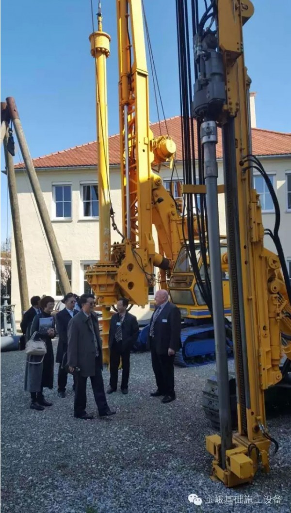 以下照片是代表团在参观宝峨第一台旋挖钻机--在1981年生产的BG 7。这台设备在宝峨总部展览。
