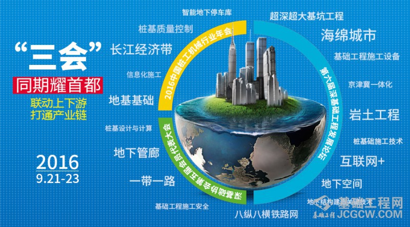 “2016中国桩工机械行业年会”、“中国建筑业协会深基础与地下空间工程分会第五届会员代表大会”、“第六届深基础工程发展论坛”将于9月21-23日在北京同期召开。三大会议的同期召开对行业发展意义重大,不仅能将各方优势资源完美整合,而且能帮助产业突破发展瓶颈、提升层次,推动产业链上下游端口的深度融合,力促整个行业的可持续发展,于此得到了各主办方、承办方领导的极度重视。
