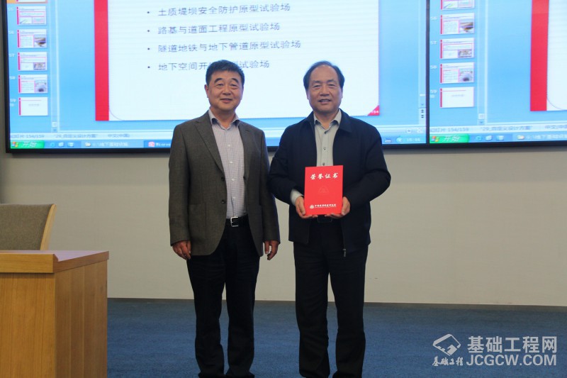 建研地基所杨斌副所长向王复明院士颁发荣誉证书