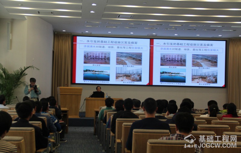 他的报告内容理论实践性强,工程案例丰富,具有良好的应用推广价值。其主要内容包含:水引发的基础工程设施灾害及病害、水灾害防治材料的发展、渗漏涌水防治技术、隐蔽病害诊治技术、城市地下空间开发防水支护技术,并结合这五个方面做了较为详尽的分析和讲解。