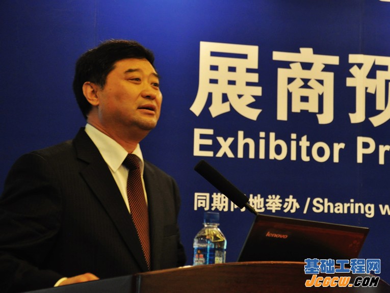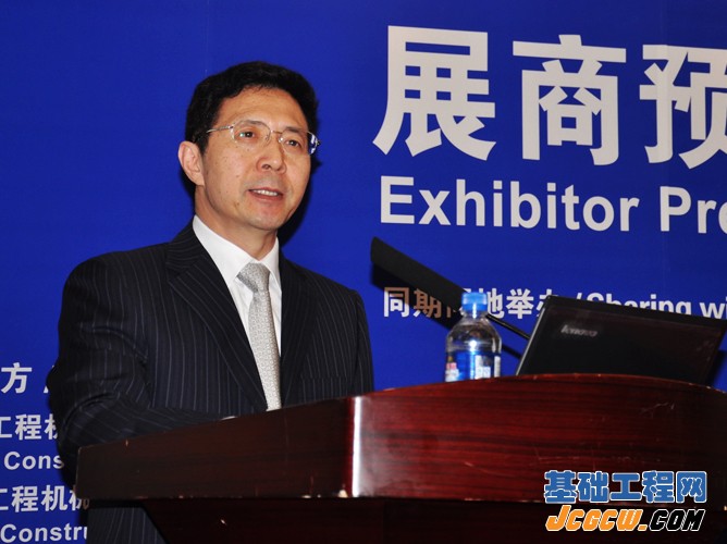 中国工程机械工业协会(CCMA)副会长兼秘书长、北京天施华工国际会展有限公司(BAICE)总经理苏子孟先生发言对工程机械行业运行进行分析和阐述BICES 2013的重大举措