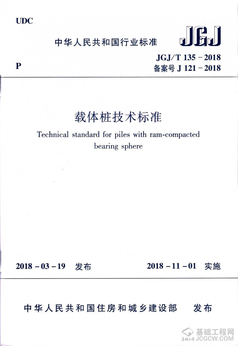 据了解,《载体桩技术标准》JGJ/T135-2018经住房和城乡建设部2018年3月19日以2018第4号公告批准、发布,于2018年11月1日起开始实施,原《载体桩设计规程》JGJ135-2007同时废止。本标准对载体桩的施工工艺进行了重点修订,将载体施工的填料从建筑垃圾修订为水泥砂拌合物,显著提高了载体桩的承载力和施工功效,并且结合研发的载体桩施工工艺和设备,拓宽了载体桩的应用范围,增加了载体桩在残积土、全风化和强风化岩层中的使用。