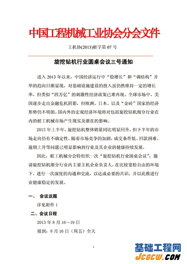 核心提示:旋挖钻机行业圆桌会议3号通知