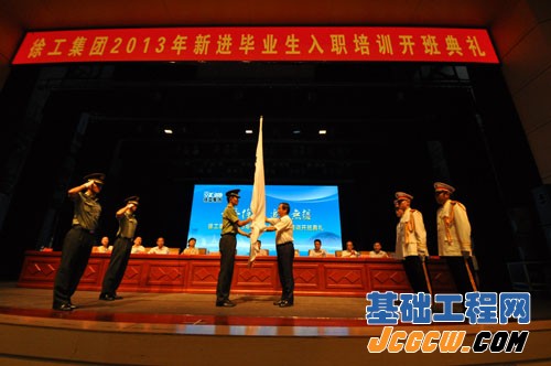 8月10日,在工程兵学院礼堂, 2013年新进毕业生入职培训开班典礼隆重举行,新进毕业生入职培训拉开大幕。公司领导王民、李锁云、李格、杨勇、施克元、王岩松、吴江龙、张守航、韩冰、孙建忠、杨东升、陆川亲自参加开班典礼并在主席台就座,各事业部和分子公司党委书记、副书记及人力资源部负责人、2013年新进毕业生与授课教师代表共同聆听了王民董事长亲授的“徐工第一课”。