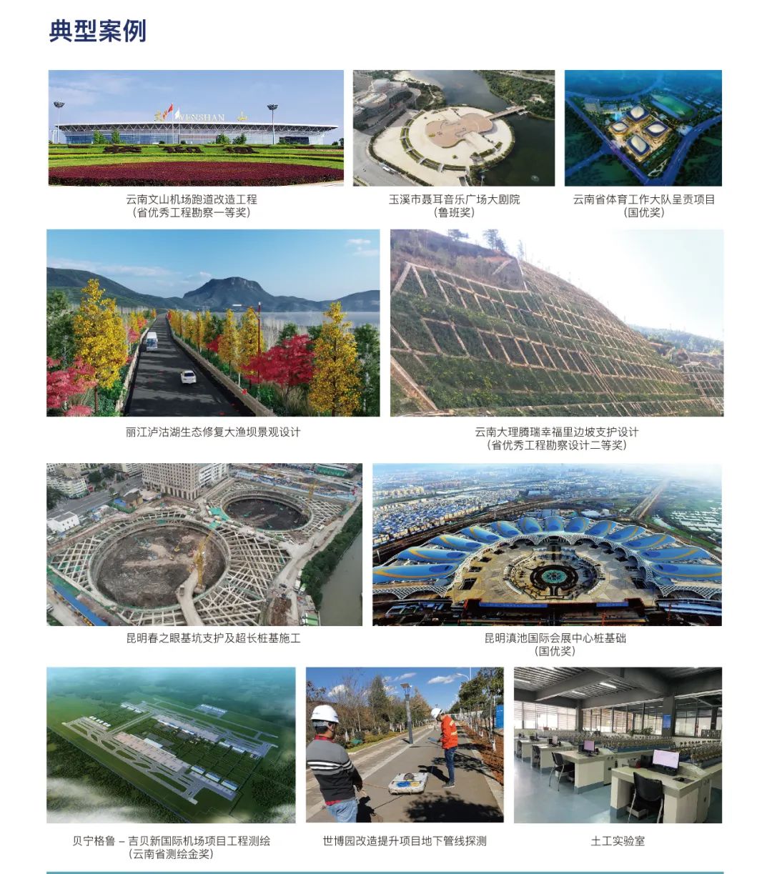云南建投第一勘察设计有限公司经过近四十年的发展,公司业务由单一走向多元,形成了以勘察设计板块为发展核心、“大岩土”全产业链为基础的产业布局。稳步成长为专业力量雄厚、技术装备先进,集测绘、工程勘察、工程设计、工程测试、岩土工程施工、工程检测、工程咨询为一体的具有较强综合实力的行业领先企业。