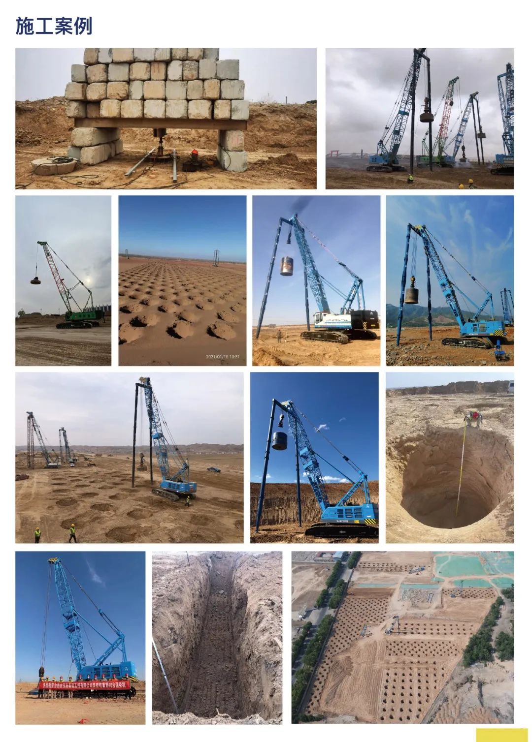 公司目前承包的地基处理业务范围有强夯、挤密桩、灌注桩、SDDC、土石方工程等。公司施工足迹遍布全国十多个省、市、自治区以及境外的吉尔吉斯斯坦、印度尼西亚、柬埔寨等国家,在机场、电力、水利、煤炭、化工、冶金、道路、码头、城建等领域的工程建设中,以优质、快捷、服务优良广受客户的信赖和好评。