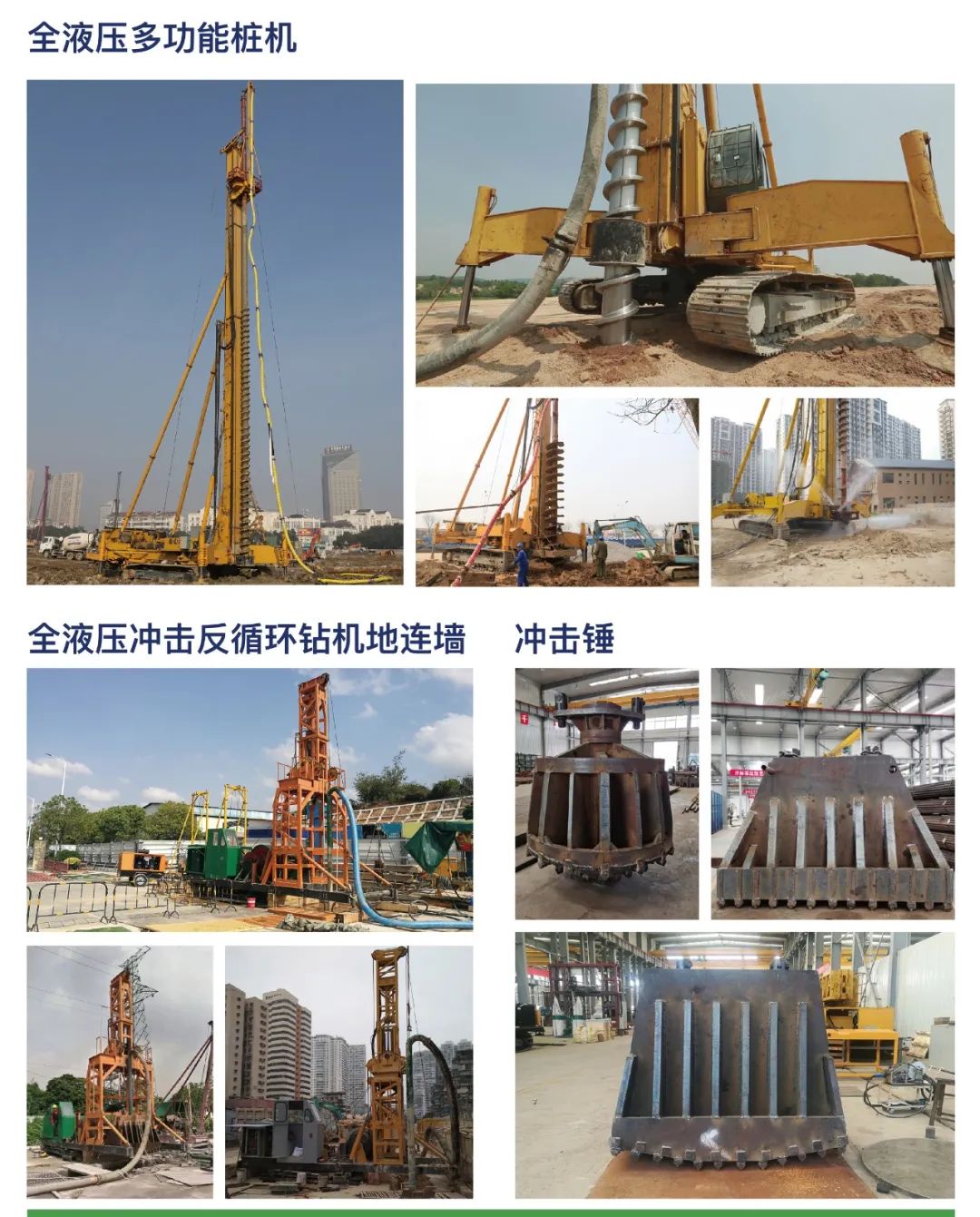山东福生矿安科技有限公司(原山东省地质探矿机械厂》是国内工程机械重要生产厂家之一,主要产品有岩心钻机,工程钻机,地质工具产品三大系列九十多个品种。YCJF 系列全液压冲击反循环钻机采用冲击破碎反循环工艺,连续排渣效率高,主要用于大口径桥梁桩、地连墙施工;DZ 系列全液压多功能桩机施工可加压,可以进行螺杆桩、挤土桩、大直径入岩长螺旋CFG 桩施工,中压旋喷水泥复合管桩施工、潜孔锤施工等。