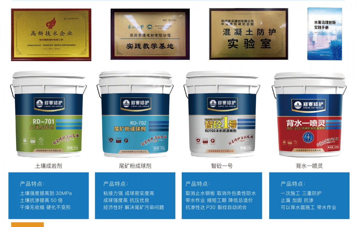 郑州赛诺建材有限公司,是一家以科技研发、技术创新为主的国家高新技术企业,建筑几余内防水(背水面防水)与冗余外防水标准的制定者。