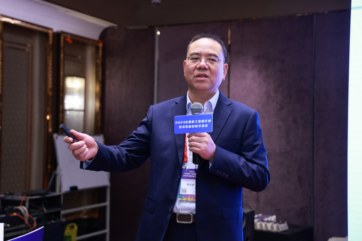 中国工程机械学会桩工机械分会秘书长郭传新作题目为《桩工机械创新发展及安全要求》的报告